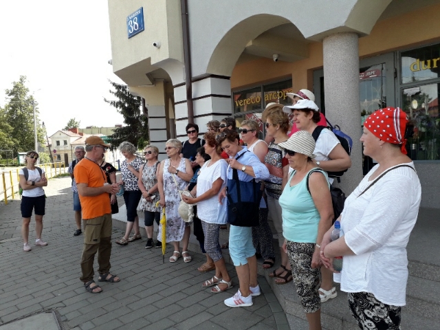 W Gołdapi Pani Przewodnik od razu przekazała nam solidną porcję informacji związanych z regionem i zachęciła do obejrzenia malowniczej okolicy sanatorium z solidnymi tężniami, które jak dowiedziałyśmy się są czwarte , co do wielkości w Polsce. Miałyśmy też okazje spróbować wód leczniczych. Następnie przeszłyśmy z kijkami nordic-walking zalesionym terenem do kwatery poniemieckiej „Robinson”, gdzie w czasie II wojny światowej znajdowało się centrum dowodzenia lotnictwem. Kolejnym punktem programu było podziwianie panoramy miasta z wysokości wieży ciśnień otoczonej tarasem widokowym. Duże nasłonecznienie skutecznie odkrywało przed nami kolejne plany widokowe. Naprawdę było czym zachwycać się.